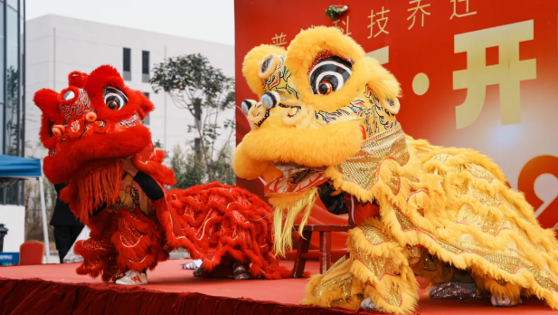 鼓铿锵震四方,瑞狮腾跃送吉祥,庆典在铿锵的锣鼓声中拉开序幕。舞狮团队随着激昂音乐跃动,瞬间点燃全场气氛。普诚科技董事长郭谦先生与总裁郁为民先生手持金笔为祥狮点睛,朱砂落定,祥狮即刻灵动起来,腾跃翻滚间完成”登高采青“。